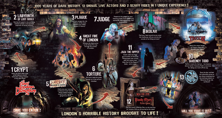 Map Of London Dungeons – The London Dungeon is a uniquely thrilling attraction Please note, locations are plotted on this map by their postcode so may not be precise. We advise you to contact the venue if you need . Walking through the backstage corridors at London Dungeons, I try my hardest to keep The walls are decked out with skulls, ancient maps, imitation weapons and life-sized mannequins that .